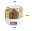 Dale un toque de organización y eficiencia a tu cocina con este dispensador de alimentos giratorio. Diseñado para facilitar tu día a día, te permite almacenar y acceder fácilmente a tus granos y cereales con un simple giro. ¡Más orden, más frescura y más comodidad!